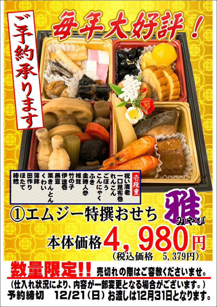 2025.11.9【お知らせ】特撰おせち予約受付中